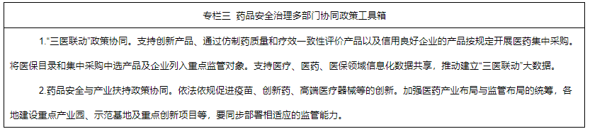 5.強(qiáng)化多部門治理協(xié)同。加快推進(jìn)“三醫(yī)聯(lián)動”改革。藥品監(jiān)管、公安、工信、衛(wèi)生健康、醫(yī)保、發(fā)展改革、財(cái)政、科技等部門加強(qiáng)資源共享和政策協(xié)調(diào),建立藥品安全治理多部門協(xié)同政策工具箱。發(fā)揮藥學(xué)科技社團(tuán)組織、新聞媒體作用,加大科普宣傳力度,舉辦全國安全用藥月和醫(yī)療器械、化妝品安全科普宣傳周等品牌活動,提升全民安全用藥用械用妝科學(xué)素養(yǎng)。進(jìn)一步完善有獎舉報(bào)制度,暢通投訴舉報(bào)渠道,充分發(fā)揮12315熱線和全國12315平臺作用。將藥品安全信用狀況依法記入企業(yè)和個人信用記錄,納入全國信用信息共享平臺,將嚴(yán)重違法失信企業(yè)和個人列入市場監(jiān)督管理嚴(yán)重違法失信名單,依法依規(guī)實(shí)施跨行業(yè)、跨領(lǐng)域、跨部門失信聯(lián)合懲戒。