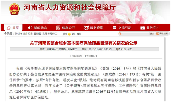 根據(jù)《關(guān)于整合城鄉(xiāng)居民基本醫(yī)療保險(xiǎn)制度的意見(jiàn)》(國(guó)發(fā)〔2016〕3號(hào))和《河南省人民政府辦公廳關(guān)于整合城鄉(xiāng)居民基本醫(yī)療保險(xiǎn)制度的實(shí)施意見(jiàn)》(豫政辦〔2016〕173號(hào))有關(guān)“統(tǒng)一醫(yī)保目錄”的要求,河南省人力資源和社會(huì)保障廳對(duì)《河南省基本醫(yī)療保險(xiǎn)、工傷保險(xiǎn)和生育保險(xiǎn)藥品目錄(2010年版)進(jìn)行調(diào)整。